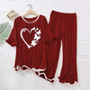 2 Pcs Heart Printed Printed Fleece Night Suit for Women